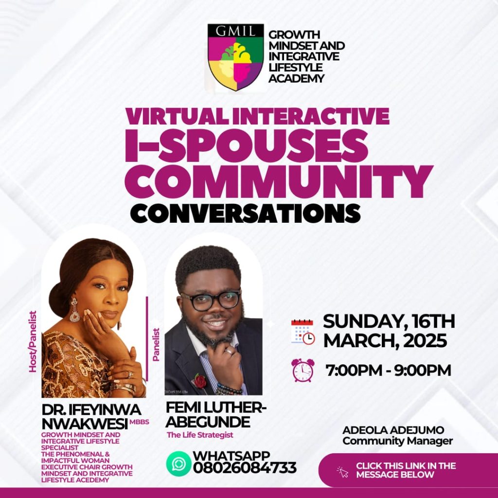 Join Dr. Ifeyinwa Nwakwesi, Growth Mindset & Integrative Lifestyle Specialist, and Femi Luther-Abegunde for an interactive conversation where they share profound insights and practical skills to help couples nurture healthy relationships.